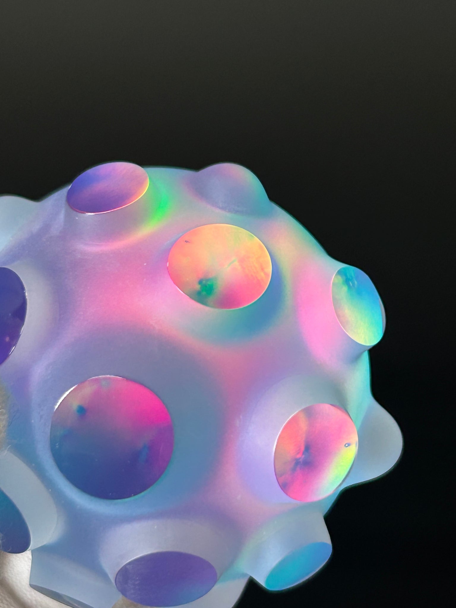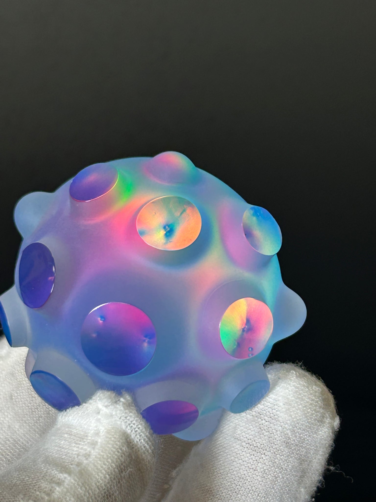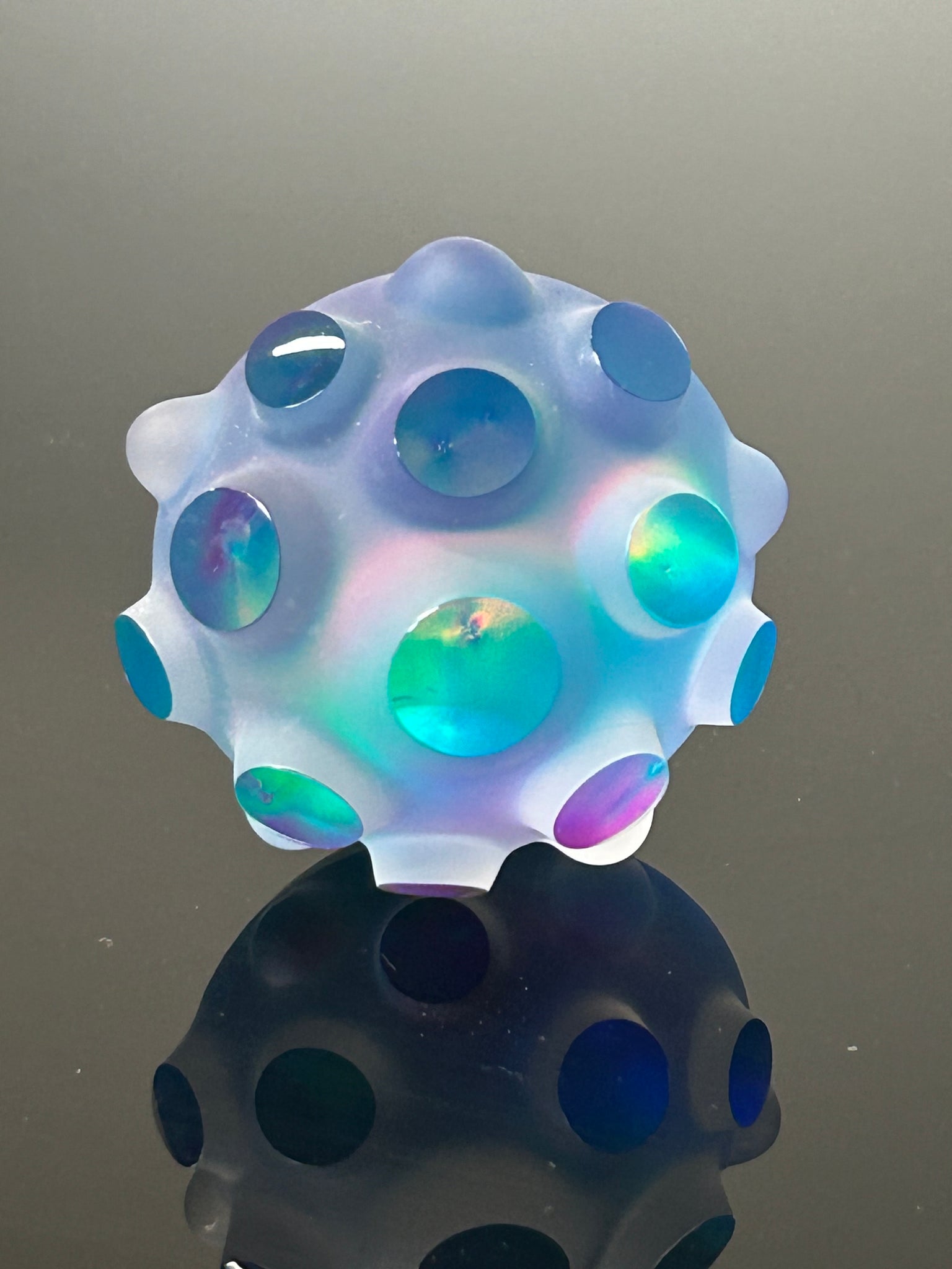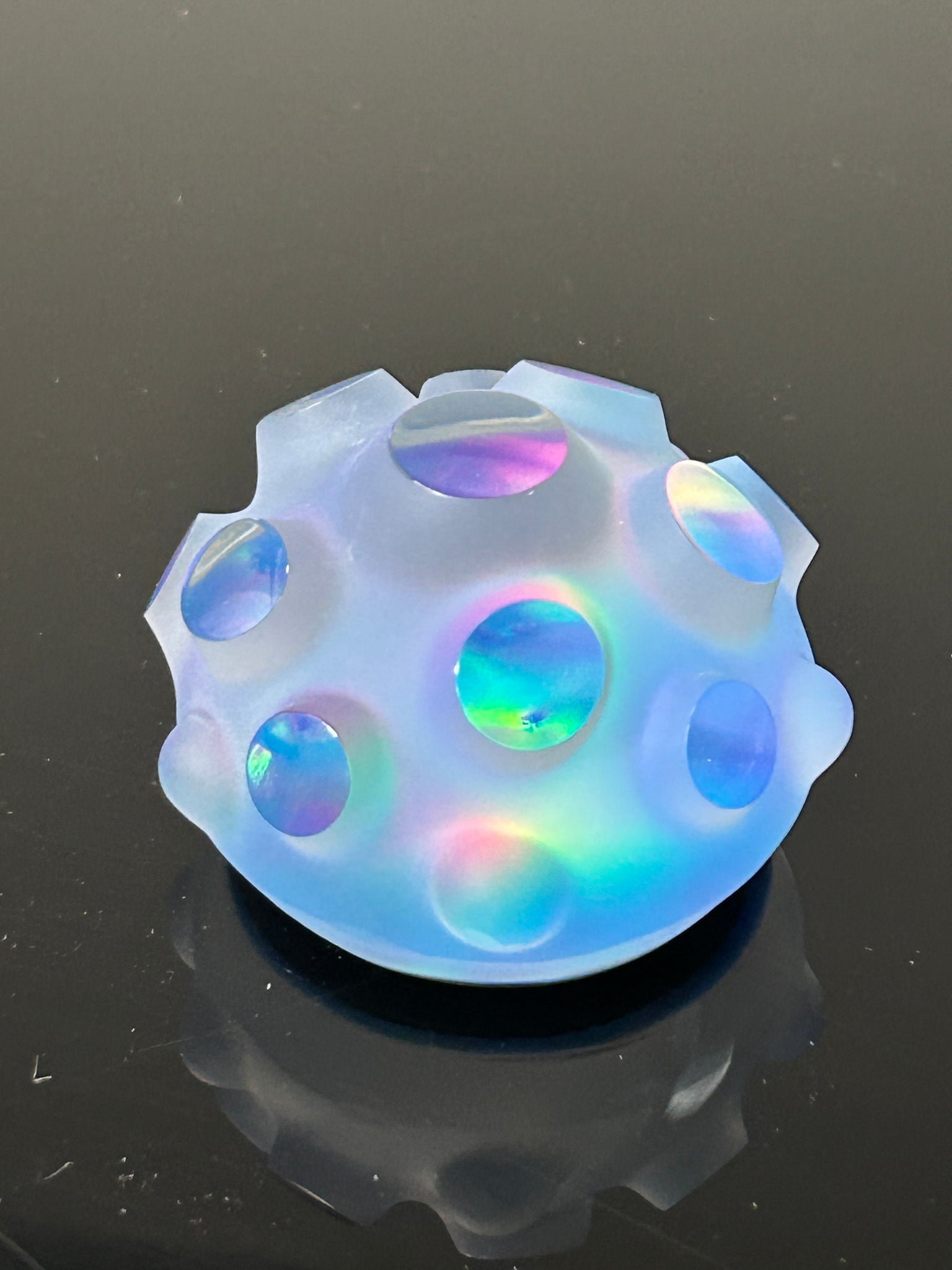 Hand made with flameworked borosilicate glass, lab grown opal. In the hydroelectric power studio of Jeremy Sinkus in Shelburne Falls Massachusetts