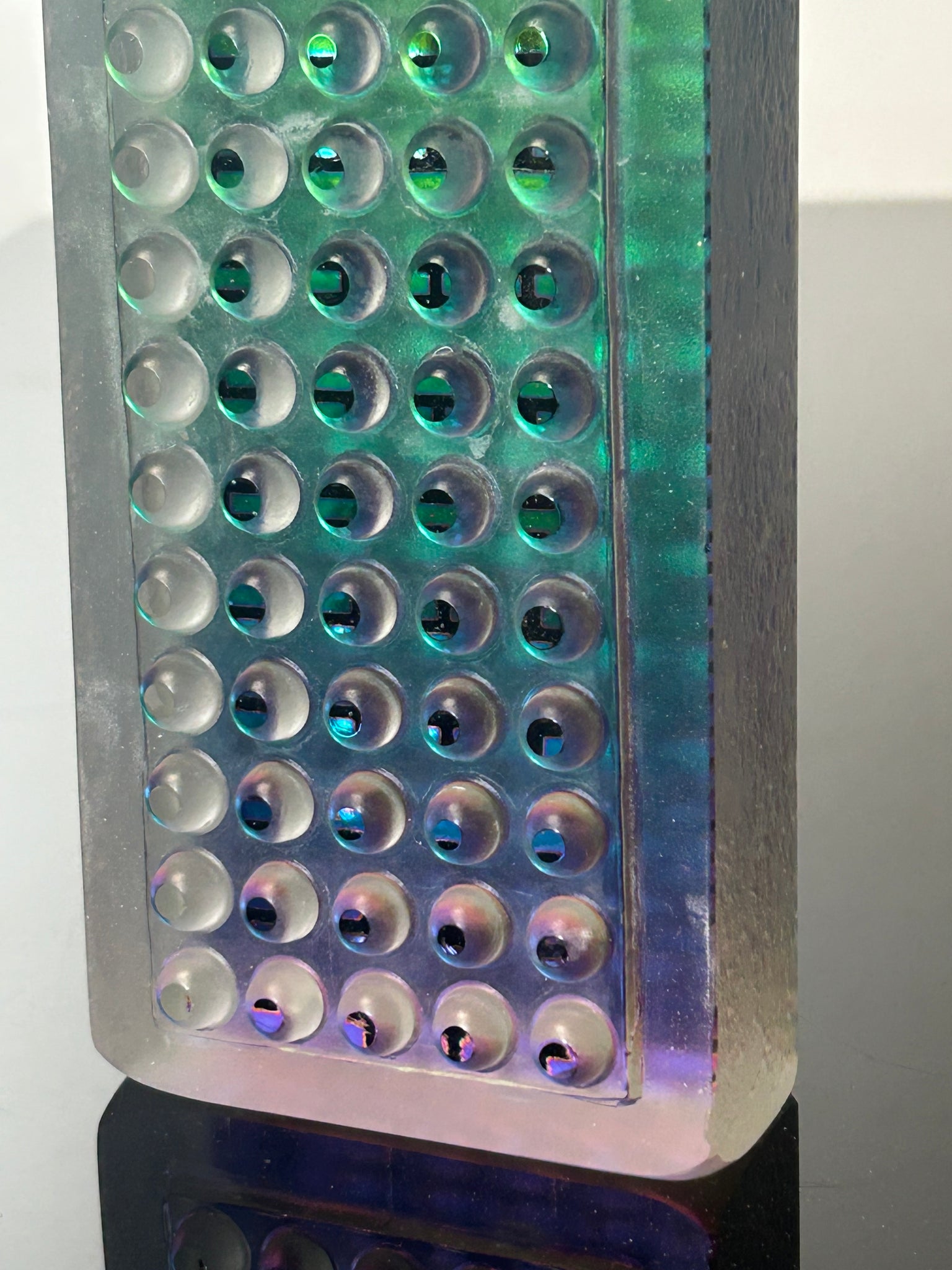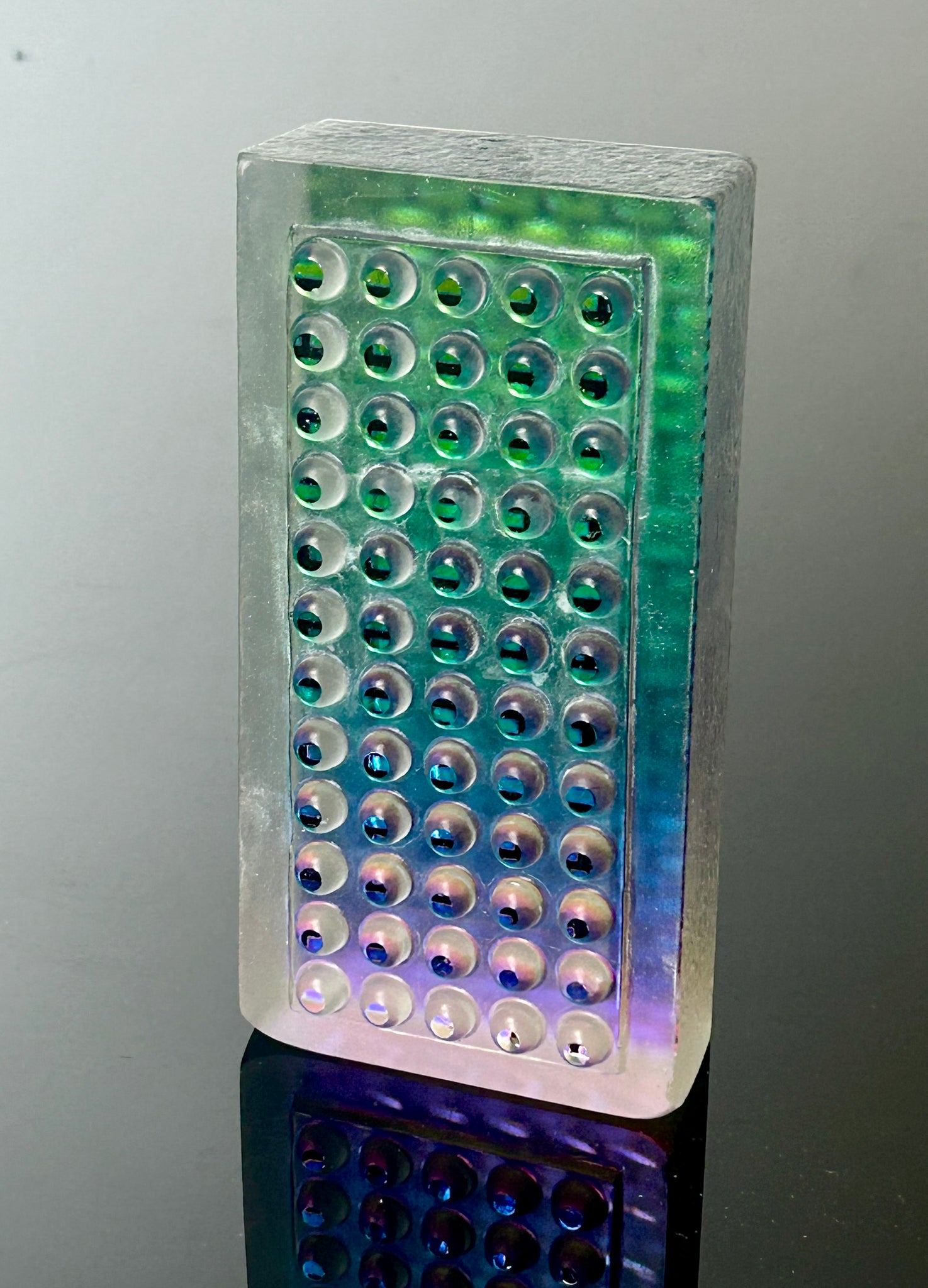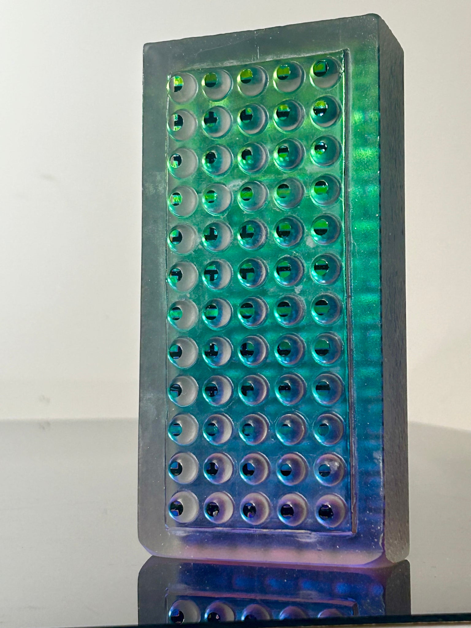 Made of castglass and dichroic glass sculpted and polished in the hydroelectric powered studio of Jeremy Sinkus in western Massachusetts