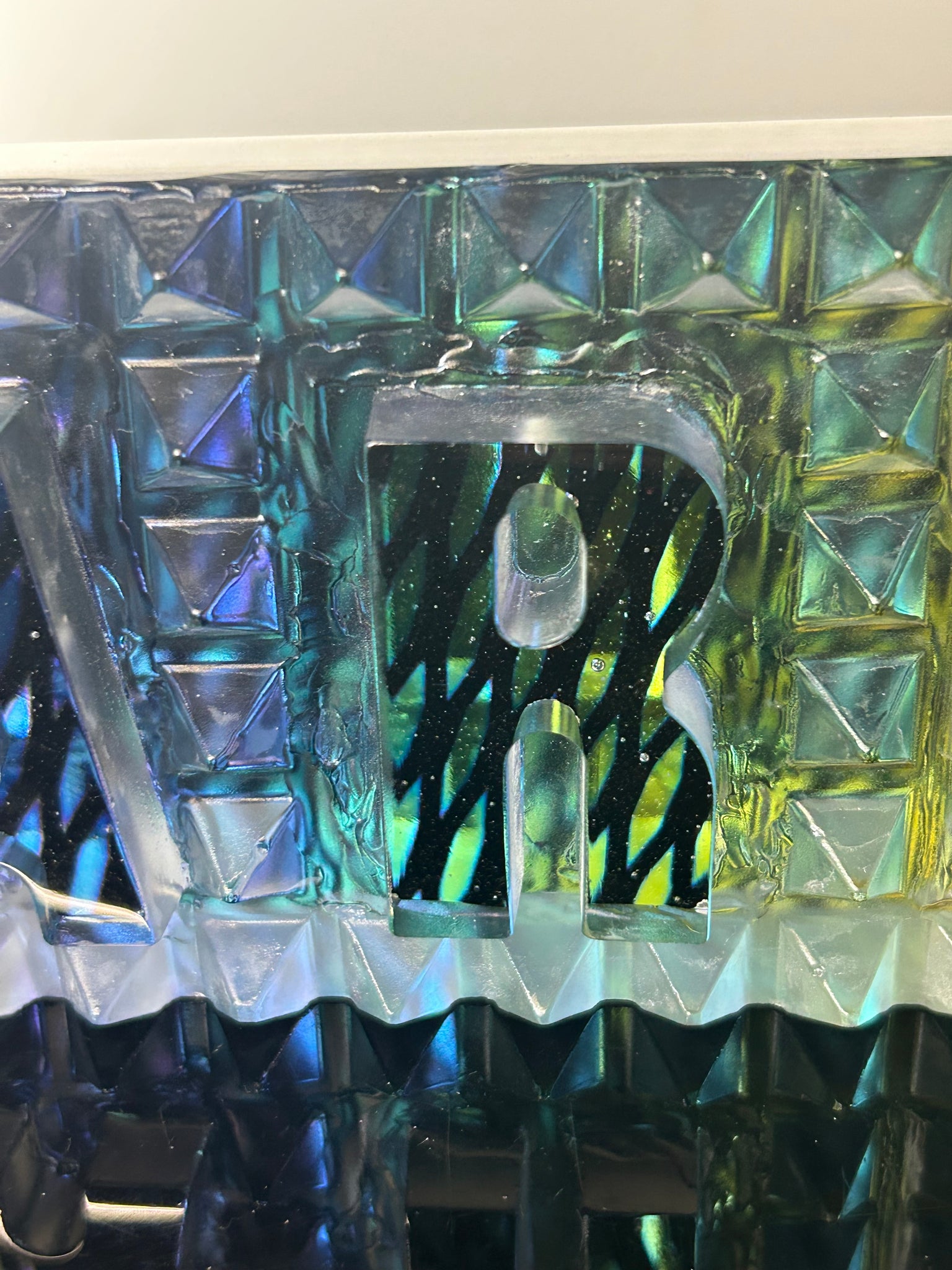 Hand made of cast glass in the hydroelectric powered studio of Jeremy Sinkus in Shelburne falls Massachusetts