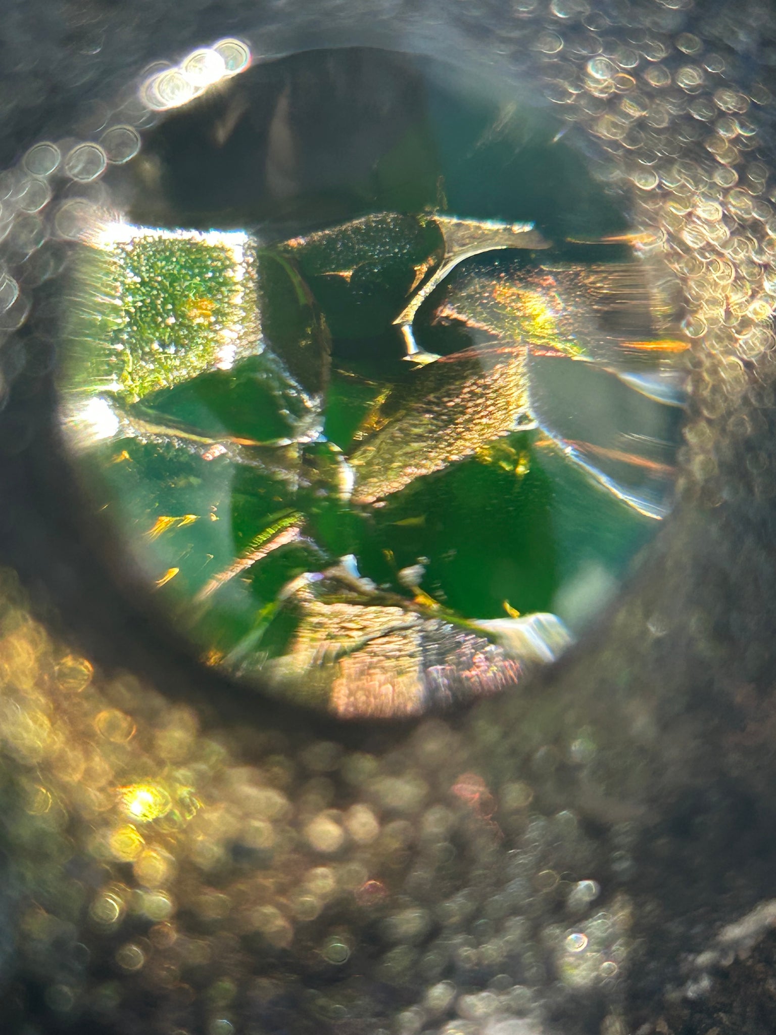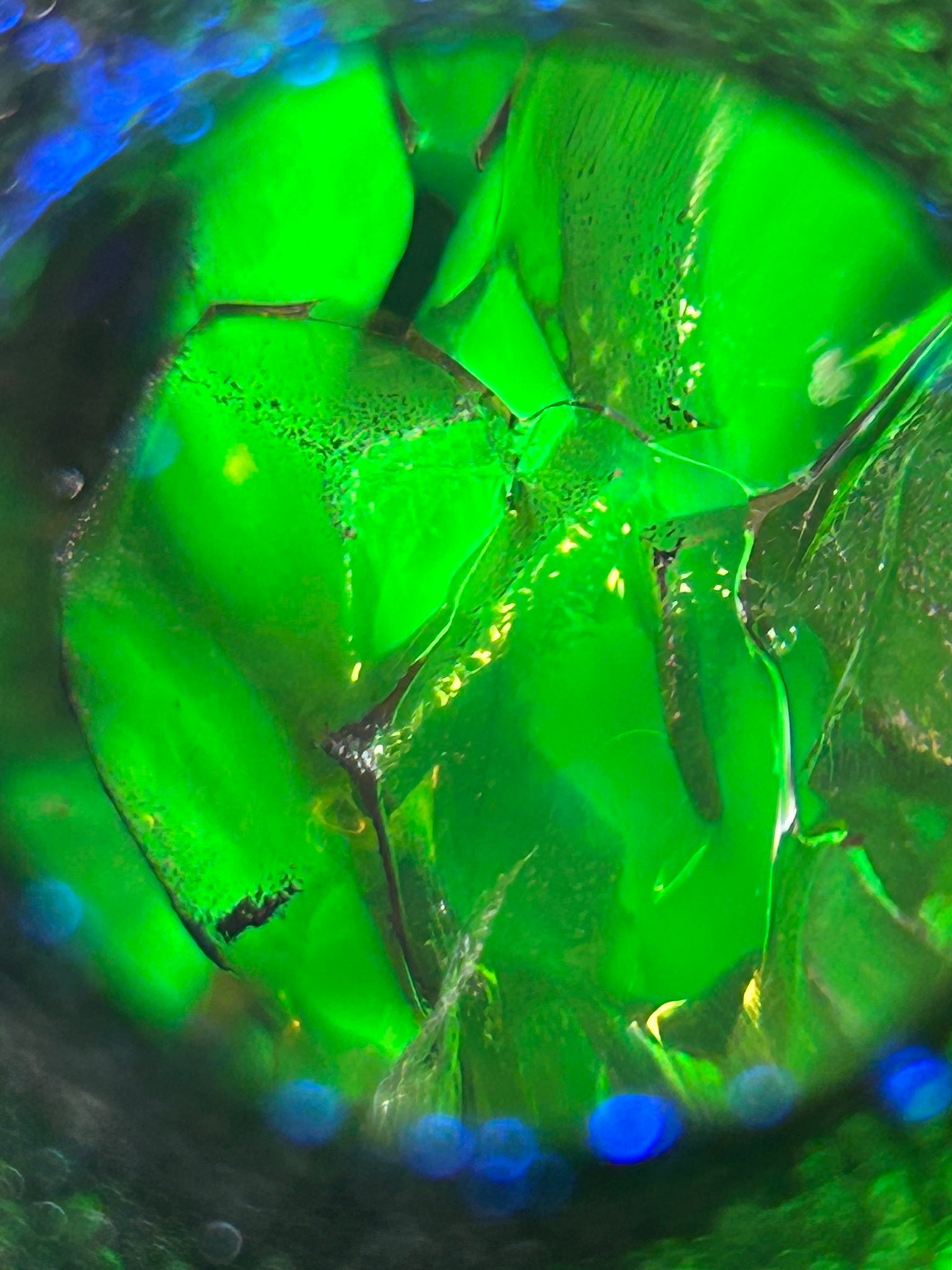 The minerals that could be out there in the universe is inconceivable. What if a meteor was contained that had all the energy we would ever need at its core? What would it look like and who would claim ownership and sell the energy?  Very UV reactive nodule with gold and uranium glass.