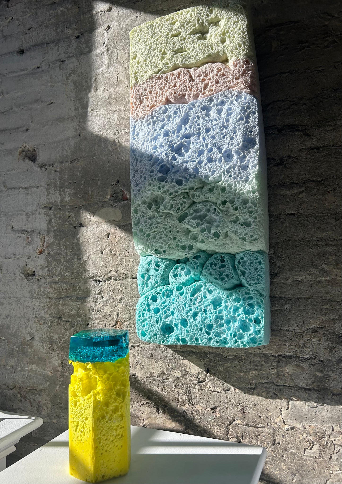 A soft texture and color pallet blends with cloud like morphing layers. Cellular foam like cavities are open to view within. Contemporary and organic together.